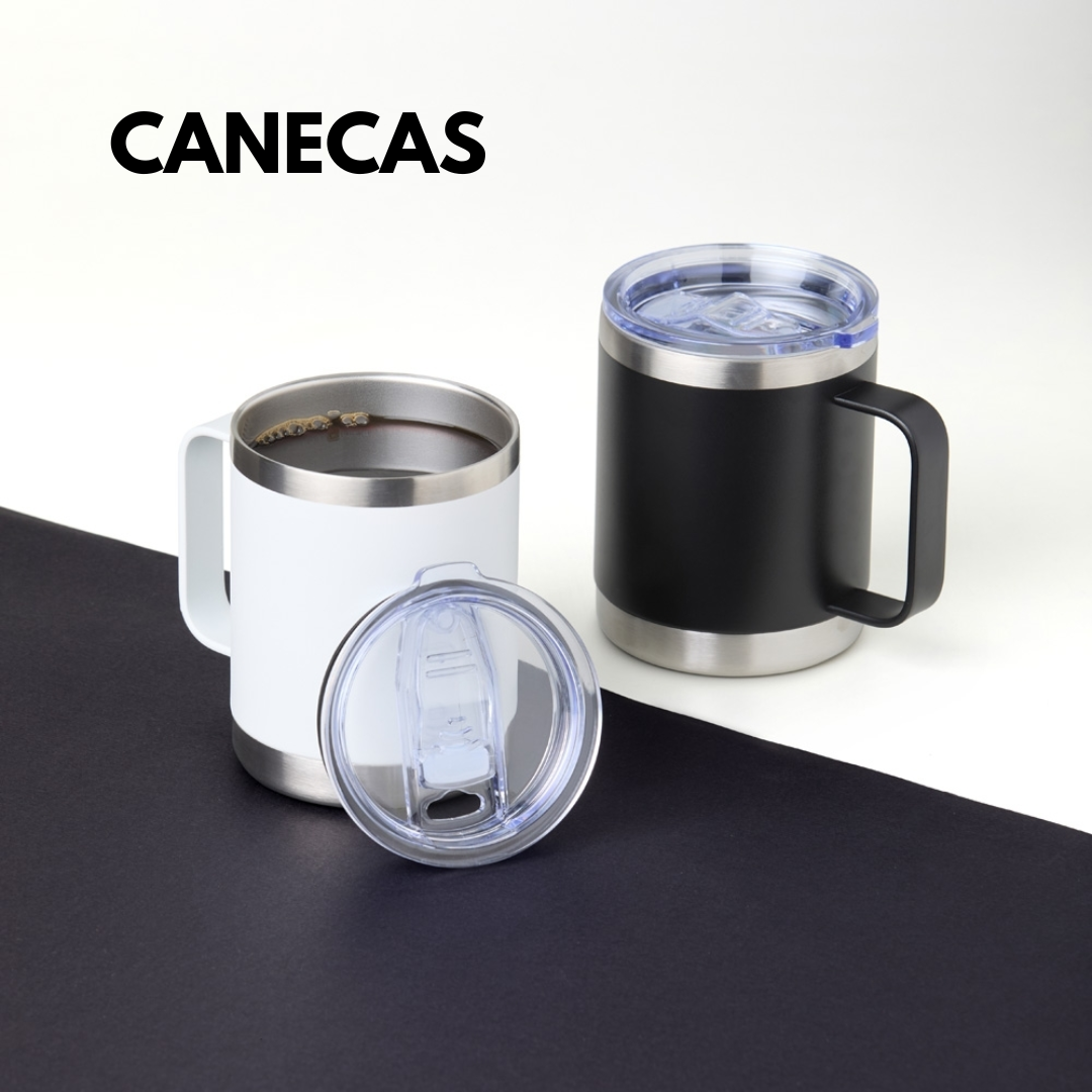 Copo térmico 320ml de parede dupla em inox livre de BPA, contém tampa com bocal.