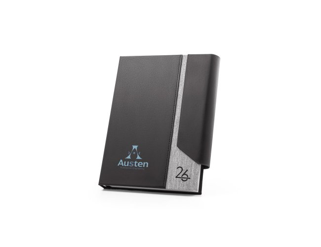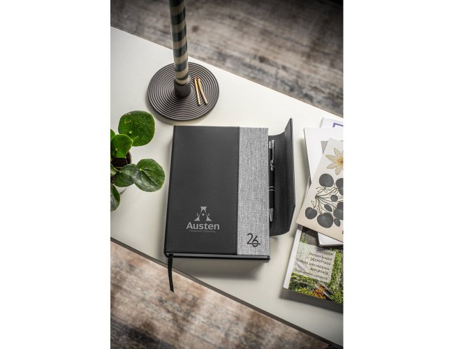 AUSTEN A5. Agenda A5 em PU (58% reciclado) e PET reciclado (100% rPET) 300D