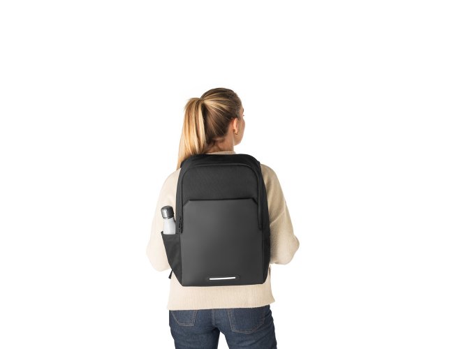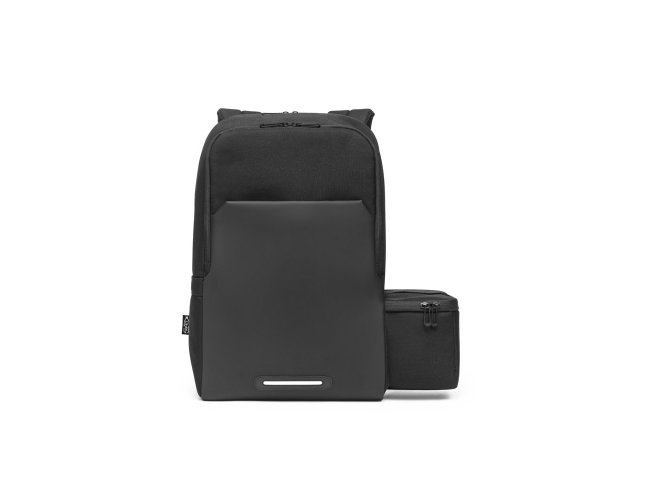Mochila 2 em 1 com bolsa térmica que permite a sua utilização em conjunto ou separado. Mochila em 900D poliéster reciclado (100% rPET) com bolso e fundo em 600D, poliéster reciclado (100% rPET), de alta densidade com revestimento resistente à água. A mochila é totalmente almofadada e tem interior forrado em 210D poliéster reciclado (100% rPET). Possui 2 compartimentos principais: um compartimento traseiro almofadado para notebook até 17.3” e um compartimento frontal espaçoso com divisória amovível que permite arrumar a sua bolsa térmica no fundo (inclusa). Bolso frontal com zíper e detalhe refletor. Bolso lateral ideal para transportar a sua squeeze e parte posterior com acolchoamento extra e alça para trolley. Capacidade até 20 L. A bolsa térmica almofadada em 900D rPET com isolamento em PEVA. Capacidade 4,5 L. Mochila: 300 x 460 x 160 mm | Bolsa térmica: 240 x 150 x 140 mm