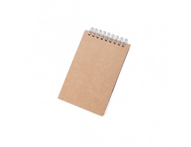 Bloco de anotações ecológico com wire-o. Contém aproximadamente 80 páginas pautadas na cor branca.