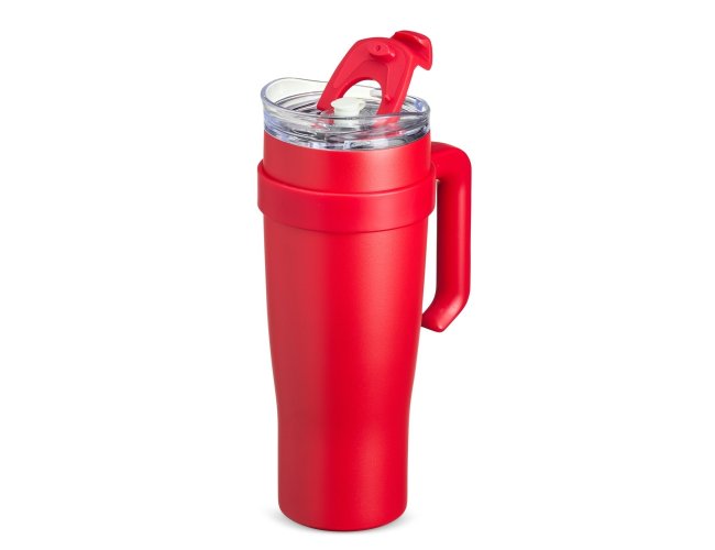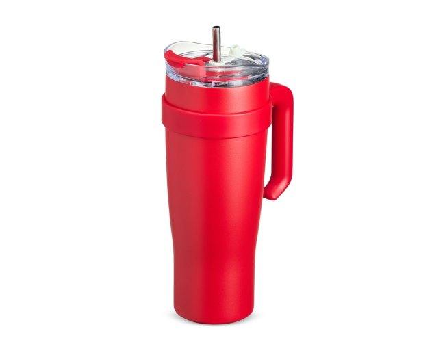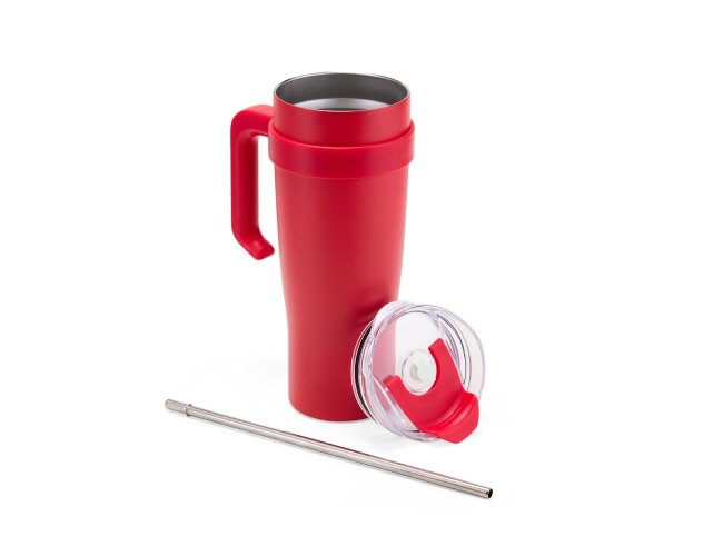 Caneca térmica com capacidade de 1,2 litros feita em inox 304 com parede dupla, contém tampa acrílica rosqueável com acesso para canudo, trava de segurança e bocal. Acompanha canudo de inox com ponta de silicone, proporcionando uma experiência mais agradável ao beber.