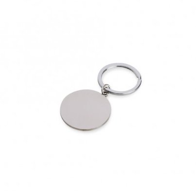 Com acabamento espelhado em ambos os lados, este chaveiro metálico exibe um visual moderno e sofisticado, capturando a atenção com seu reflexo metalizado.