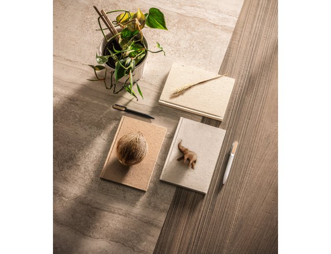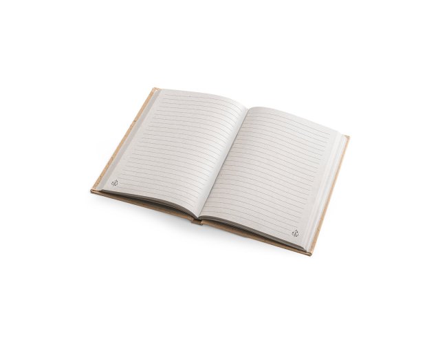 Caderno A5 de capa dura em casca de coco (60%) e pedaços de algodão reciclado (40%). O interior com 80 folhas pautadas de papel coco 100% reciclado. Um caderno que se distingue por dar uma segunda vida a materiais que podem ser reciclados. 145 x 205 mm