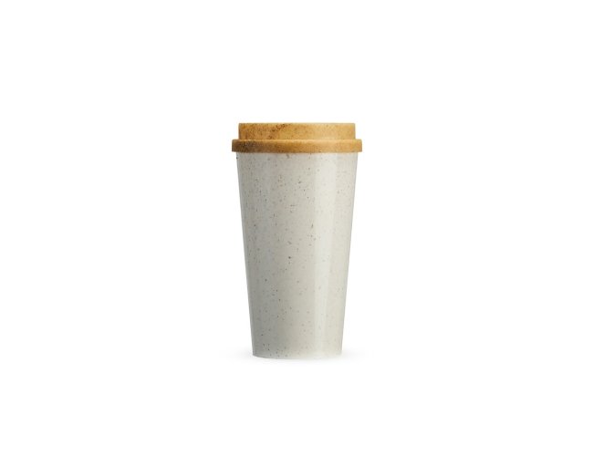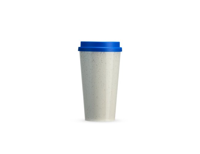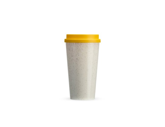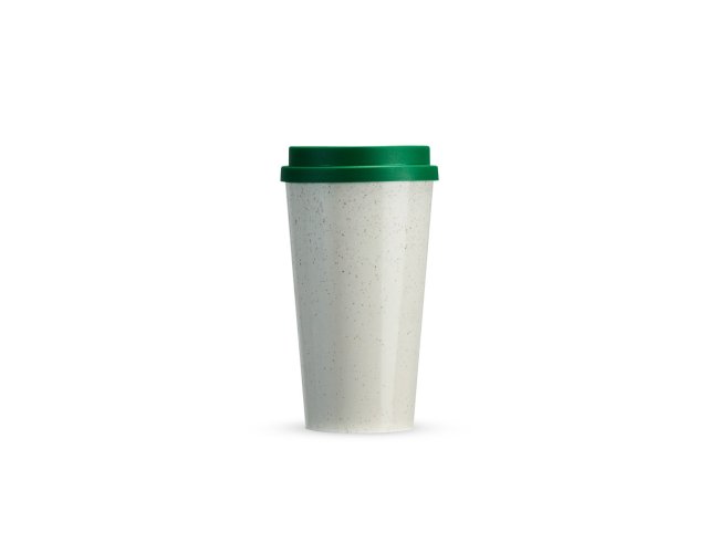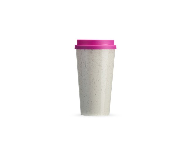 Copo em fibra de arroz com capacidade de até 550ml. Possui tampa protetora com bocal.