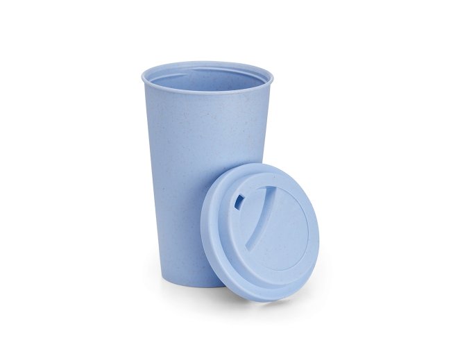 Copo fibra de bambu 450ml. Possui tampa com abertura no bocal, material sustentável e textura diferenciada.