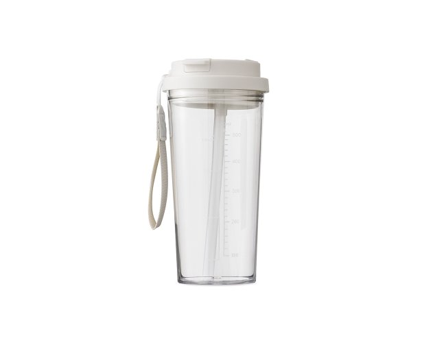 Copo em plástico livre de BPA com capacidade para até 600ml. Possui marcação de volume impressa e tampa rosqueável com trava de segurança para o bocal, além de bico flip com protetor próprio. Acompanha canudo para encaixe interno e alça de nylon com detalhe em couro sintético.