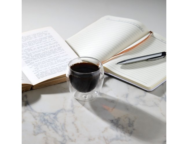 Copo de vidro borossilicato parede dupla com capacidade para 160ml.