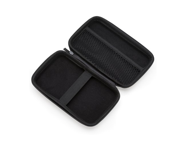 Estojo couro sintético com zíper, possui rede interna e elástico de nylon. Case utilizada para montar kits tecnológicos.
