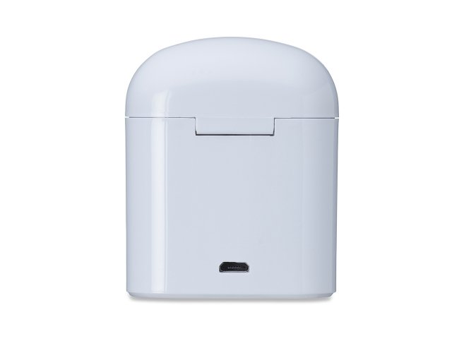 Fone bluetooth plástico com case carregador. Para utilização do produto, pressione e segure o botão lateral de ambos fones ao mesmo tempo, luzes led em vermelho e azul ficarão piscando alternadamente até a junção das duas partes (quando conectadas apenas um lado dos fones permanecerá aceso), após realizado o processo conecte o fone através do bluetooth e o led se apagará, indicando a conexão ao dispositivo. Quando emparelhado, pressione uma vez o botão do fone para iniciar ou pausar uma música, ao segurar o botão irá avancar a faixa; no modo ligação pressione uma vez o botão para atender a chamada ou segure o botão do fone para recusá-la. Para o carregamento do produto é necessário recarregar inicialmente o case e após este processo basta conectar os fones no estojo e pressionar o botão power para o carregamento dos mesmos. Fones com microfone embutido. Enquanto o case é carregado o led vermelho ficará piscando, ao concluir a carga o led permanecerá aceso; no carregamento dos fones leds vermelhos ficarão acesos e ao concluir a carga se apagarão. Acompanha cabo USB.