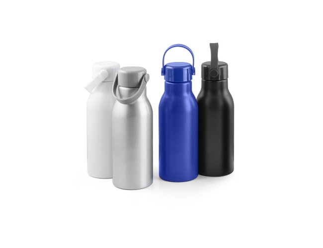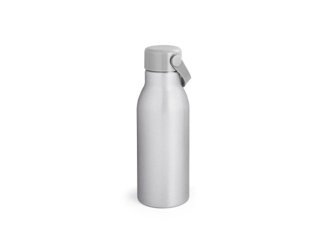Squeeze em alumínio 100% reciclado com parede simples e acabamento mate. Tampa em PP com pega de silicone para fácil transporte. Capacidade até 700 mL. Fornecido em caixa presente em papel kraft. Certificação EU Food Grade. ø73 x 213 mm