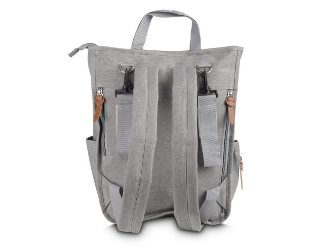 Mochila Multifuncional em poliéster com detalhes em PU. Possui alça de mão, alça para ombro e engate para carrinho de bebê. Conta com 2 bolsos laterais, 2 frontais com zíper e 2 compartimentos traseiros com zíper. O interior inclui divisórias, uma delas térmica, e uma divisória com zíper. Prática e versátil.