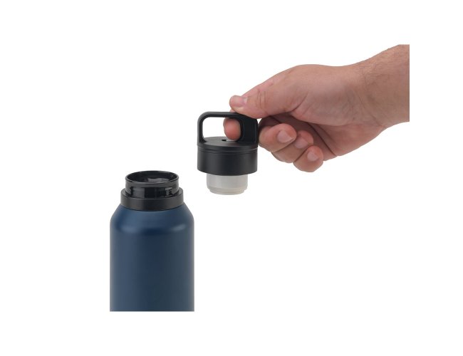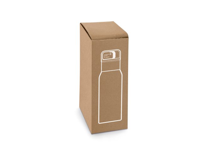 Garrafa em aço inox 91% reciclado com parede dupla isolada a vácuo e parede interna revestida a cobre, características que permitem conservar a temperatura das suas bebidas por um longo período. A tampa em PP é à prova de vazamentos e incorpora um botão que facilita a sua abertura. O acabamento da garrafa em mate confere-lhe um visual mais contemporâneo. Capacidade até 590 mL. Fornecido em caixa presente de papel kraft reciclado. Certificação EU Food Grade. ø78 x 248 mm