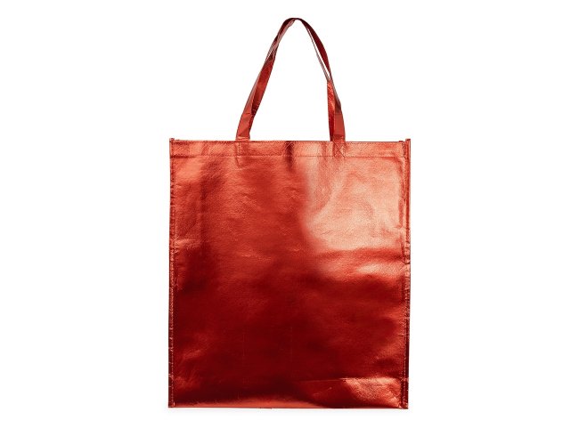 Sacola confeccionada em TNT com revestimento externo laminado e duas alças costuradas.