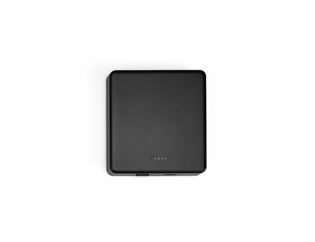 Bateria portátil com carregador por indução (wireless) em ABS 100% reciclado e acabamento em mate. A bateria leve em lítio e com design slim, tem uma capacidade de 5.000 mAh e tempo de vida ≥ 300 ciclos. Esta bateria portátil torna-se muito prática para o dia a dia uma vez que permite, através do seu magnetismo, prender atrás dos smartphones ou capas com este sistema. Possui entrada/saída USB-C e potência máxima de 15W para carregamento rápido sem fios. Compatível com smartphones com tecnologia de carregamento sem fios. Incluso cabo USB-C para carregamento rápido. Fornecido em caixa presente de papel kraft reciclado. 74 x 69 x 15 mm | Caixa: 77 x 72 x 18 mm