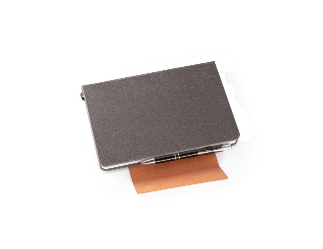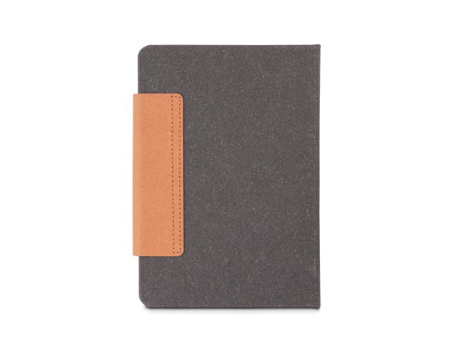 Agenda B5 em pele reciclada (58%) com fecho magnético. Está organizada num plano semanal. Inclui suporte para esferográfica (incluída) e marcador em fita. Fornecida com bolsa de non-woven. 175 x 245 mm | Bolsa: 220 x 270 mm