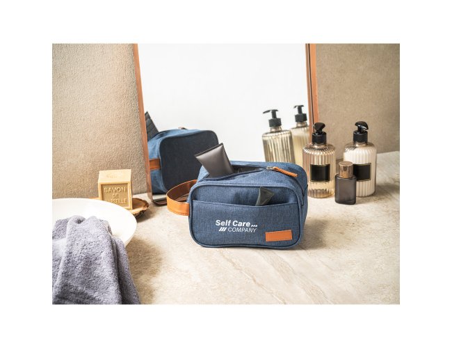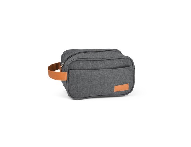 Necessaire em 600D de alta densidade e pega em PU. Contém bolso frontal com zíper e placa em PU. Medidas: 220 x 130 x 130 mm